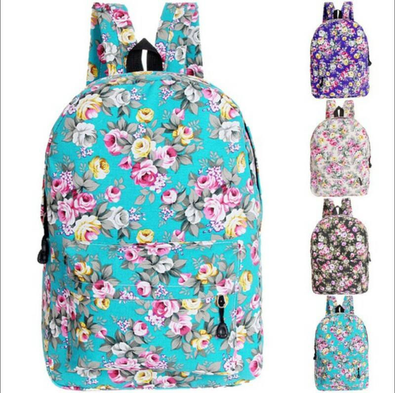 Flowers Pattern Womens Canvas Backpack School Bag Travel Rucksack Bookbags